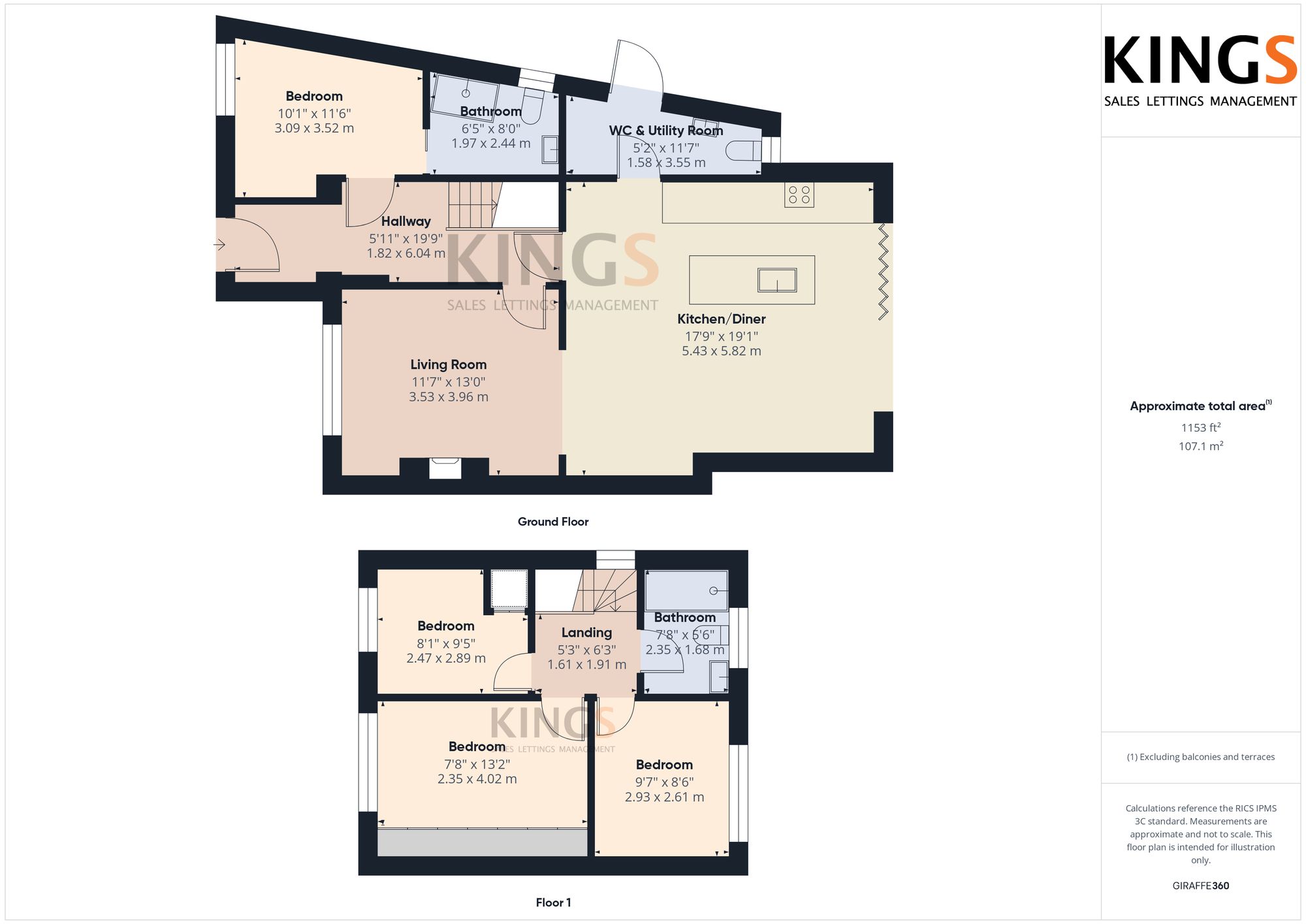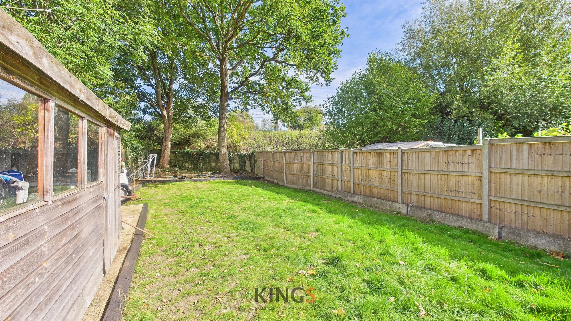 Approx 110ft rear garden with patio and lawn areas.