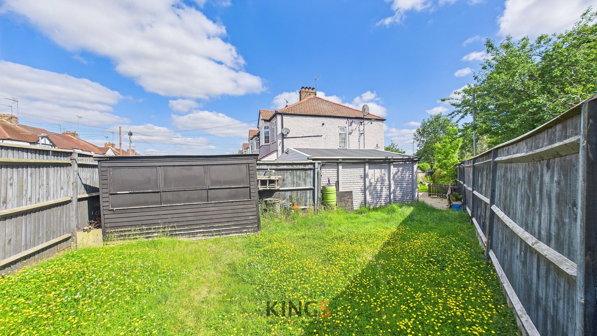 East facing rear garden with large wrap around side garden